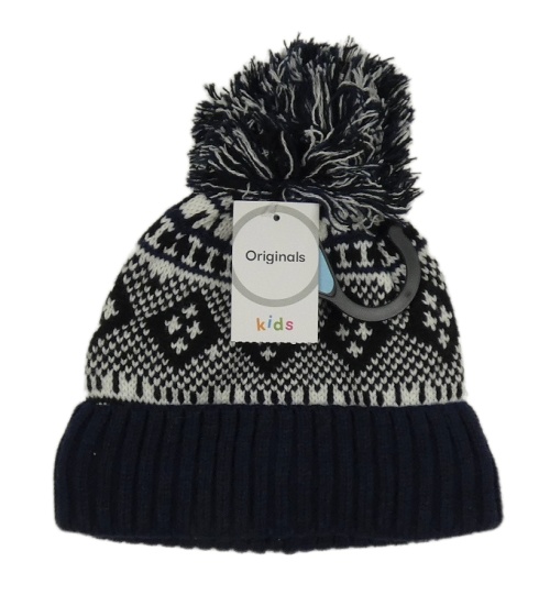 Nové - Tmavomodro-biela pletená čapica s brmbolcom