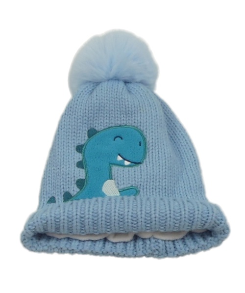 Modrá pletená čapica s dinosaurom a brmbolcom