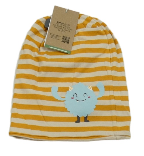 Nové - Hořčicovo-béžová pruhovaná beanie čapica s príšerkou TCM