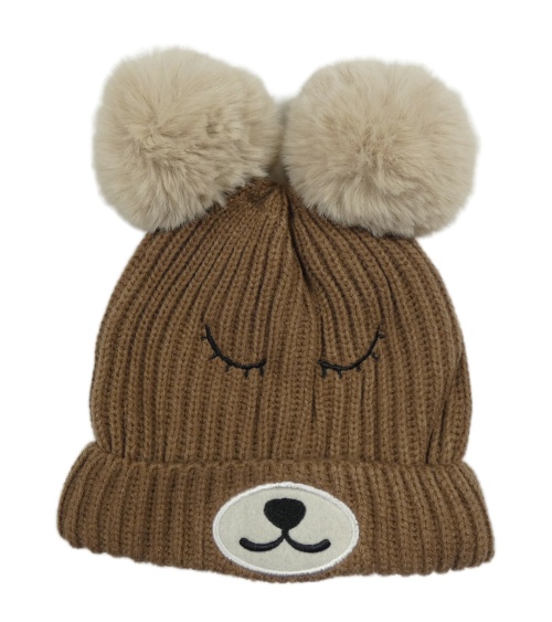 Hnedá pletená rebrovaná čapica s medvedíkom