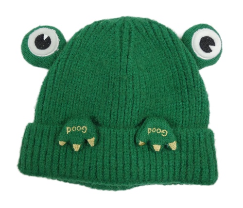 Zelená pletená podšitá čepice - žába