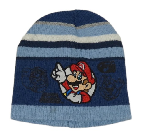 Tmavomodro-modrá pruhovaná pletená čapica s Máriem