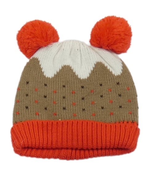 Hnedo-bielo-červená pletená čapica s bambulemi Lily & Dan