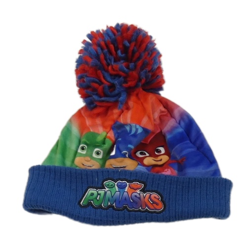 Modro-farebná plyšová čapica s bambulí - Pyžamasky