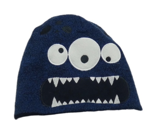 Tmavomodrá melírovaná obojstranná čapica s príšerkou