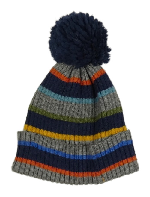 Sivo-tmavomodro-farebná pruhovaná rebrovaná čapica s brmbolcom M&S