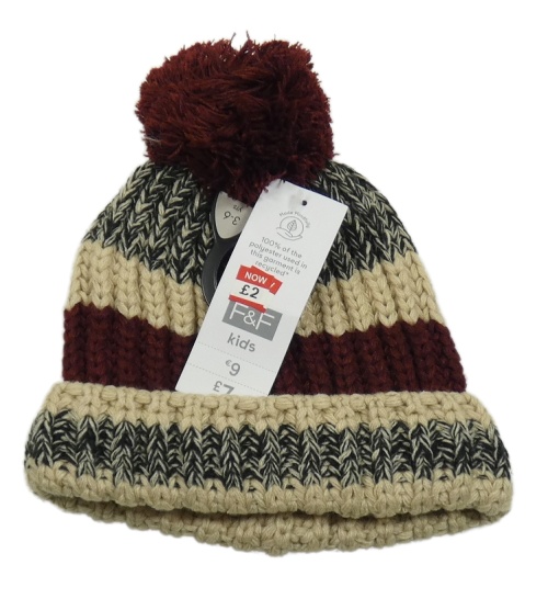 Nové - Vínovo-smetanovo-tmavomodrá čapica s brmbolcom F&F