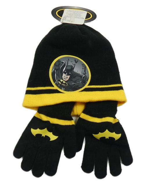Nové - 2set - Černo-žlutá čepice + prstové rukavice s Batmanem