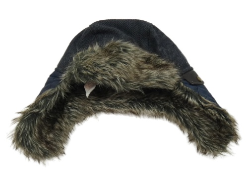 Tmavomdorá šusťákovo/vlněná beranice s kožešinou
