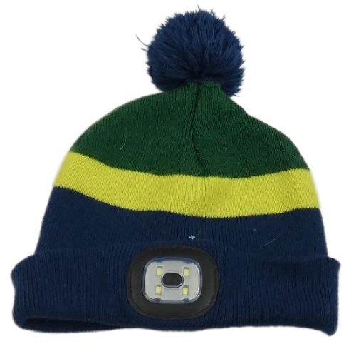 Zeleno-žlto-tmavomodrá čapica s LED světlem