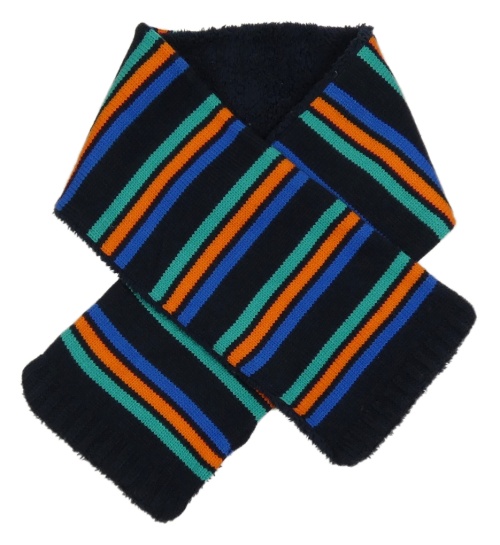 Tmavomodro-zeleno-oranžová šál s pruhmi