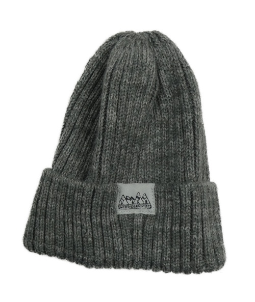 Sivá melírovaná rebrovaná pletená čapica s nášivkou
