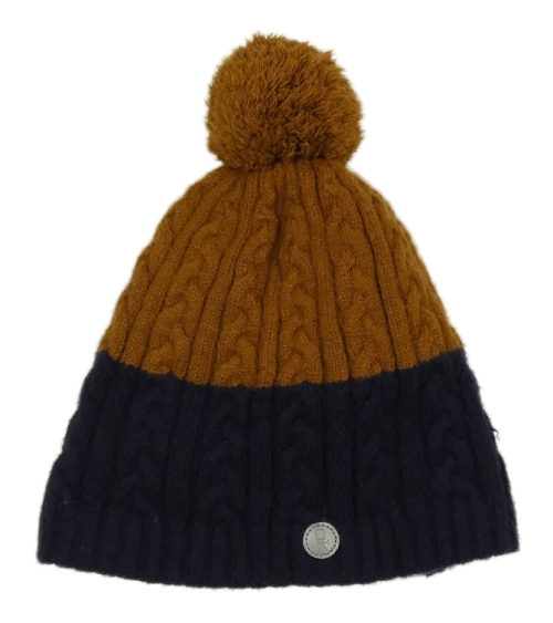 Hnedo-tmavomodrá vzorovaná rebrovaná pletená čapica s brmbolcom OKaïdi