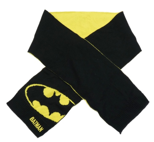 Čierno-žltá pletená šál s Batmanem