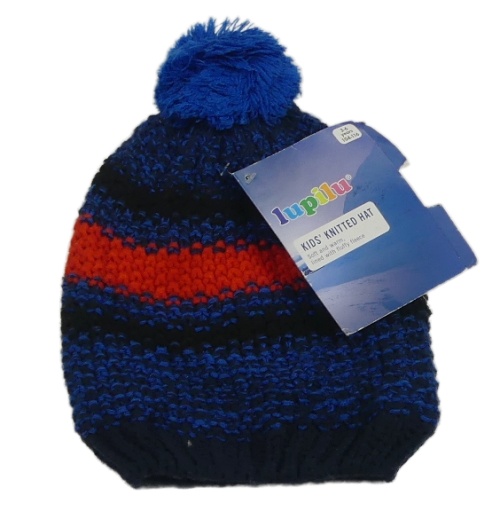 Nové - Tmavomodro-čierno-červená čapica s brmbolcom Lupilu