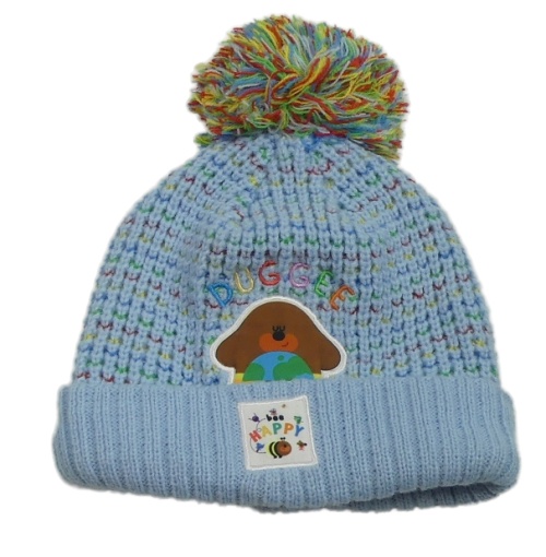 Svetlomodrá melírovaná pletená čapica s Hej Hafí a brmbolcom Nutmeg