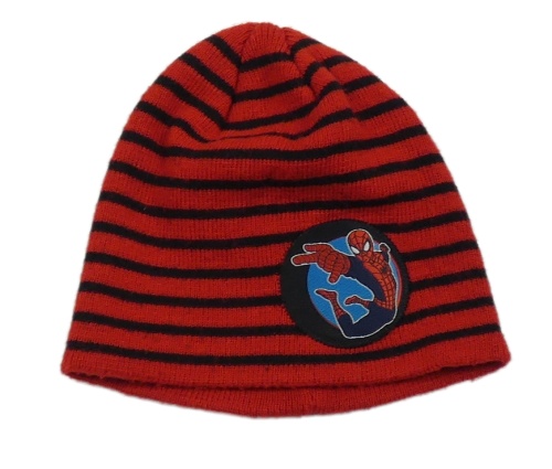Červeno-čierna pruhovaná pletená čapica so Spider-manem MARVEL