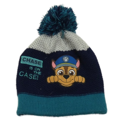 Tmavomodro-zeleno-sivá čapica s bambulí - Tlapková patrola
