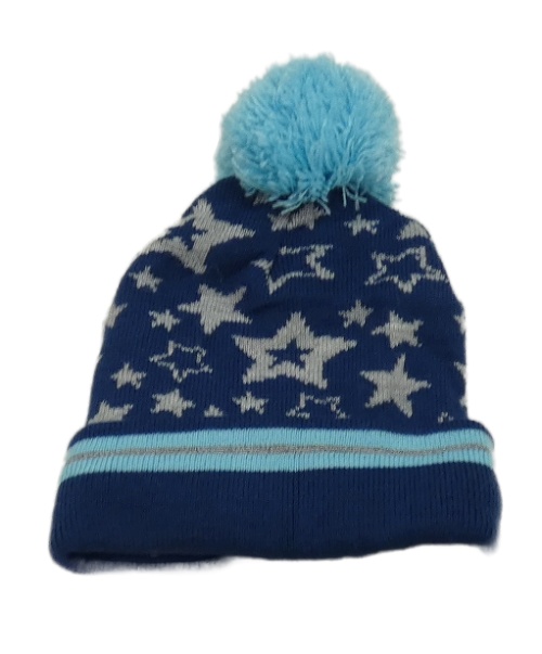 Tmavomodrá pletená podšívka s hviezdičkami a bambulkou