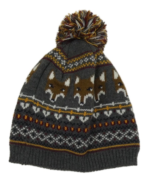 Tmavosivá vzorovaná pletená čapica s liškami a brmbolcom Pusblu