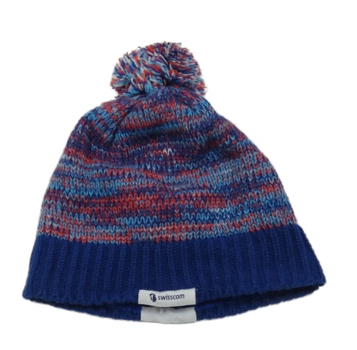 Modro-červená melírovaná pletená podšitá čapica s brmbolcom