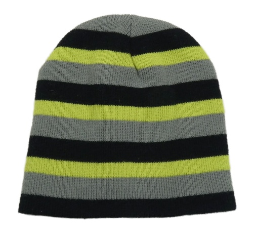 Sivo-čierno-limetková pruhovaná pletená čapica