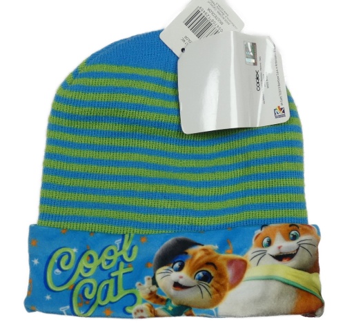 Nové - zeleno-modrá pruhovaná pletená čapica s obrázkom