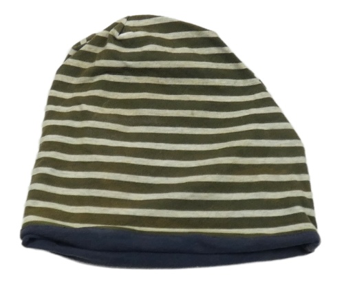 Kaki-sivá pruhovaná obojstranná čapica