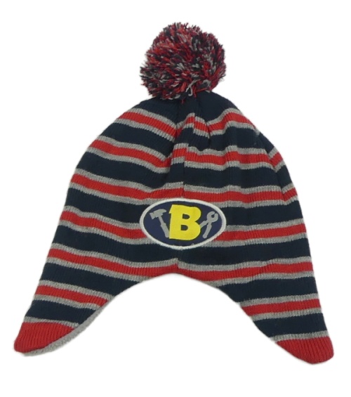 Tmavomodro-červeno-sivá pruhovaná čapica s Bořkem a brmbolcom