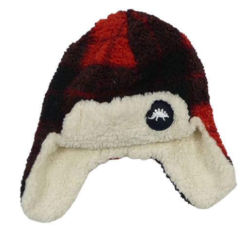 Červeno-černá kostkovaná huňatá zateplená beranice s nášivkou F&F