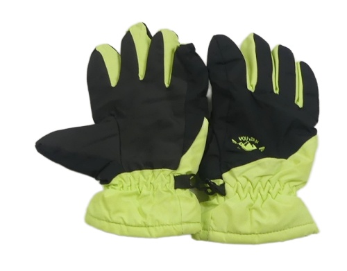 Černo-neonově zelené šusťákové zimní rukavice s potlačou
