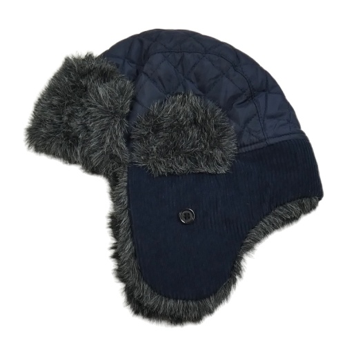 Tmavomodrá šusťákovo/manšestrová beranice s kožešinou TU vel.116-139