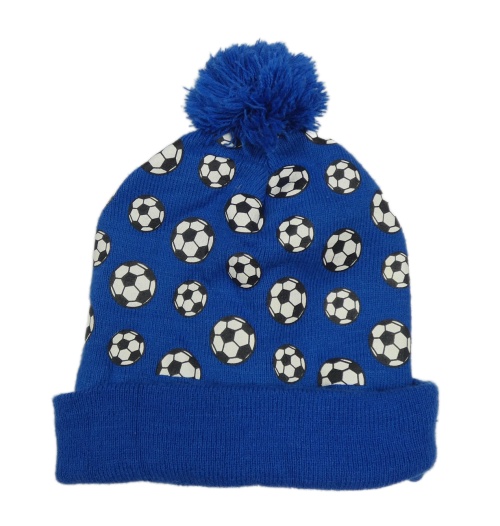 Modrá vzorovaná pletená čapica s loptami a brmbolcom