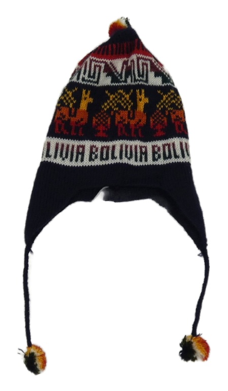 Tmavomodro-farebná čapica so vzorom a strapcemi