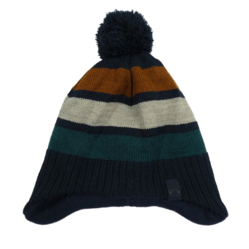 Tmavomodro-medovo-svetlošedá -smaragdová čapica s brmbolcom H&M