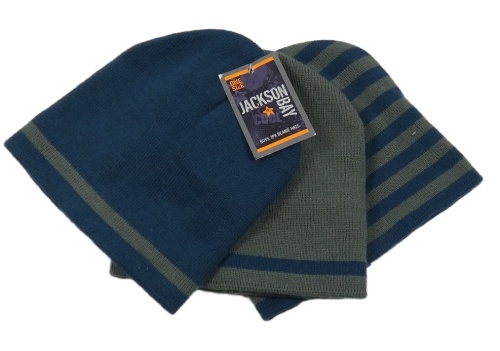 Nové - 3x - Pletená čepice - Tmavomodro/šedá s pruhem, tmavomodro/šedá pruhovaná