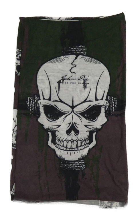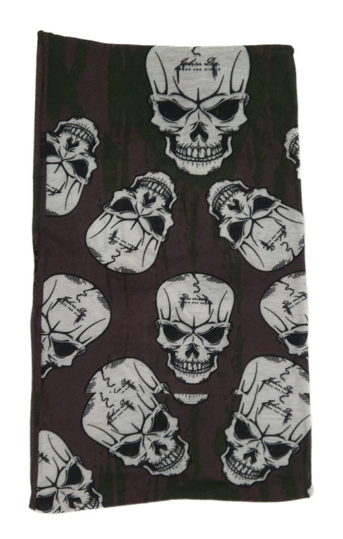 Fialovo-zelený multifunkční nákrčník s lebkami