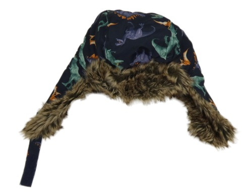 Tmavomodrá šusťáková beranice s dinosaurami a kožešinou H&M