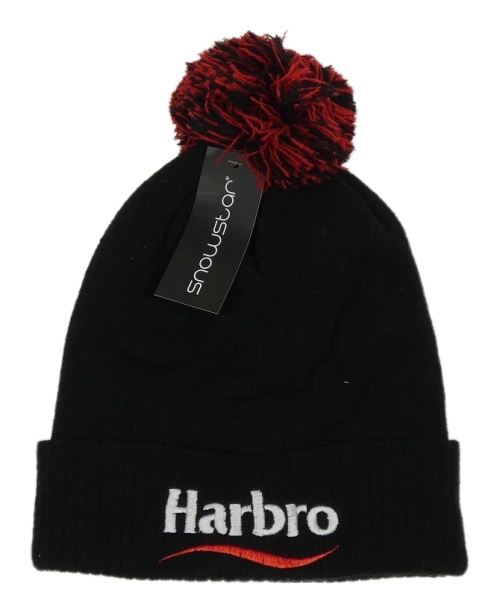 Nové - Čierna čapica s nápisom a červenou brmbolcom
