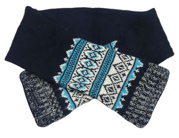 Tmavomodro-bielo-modrá pletená/fleecová šál so vzorom