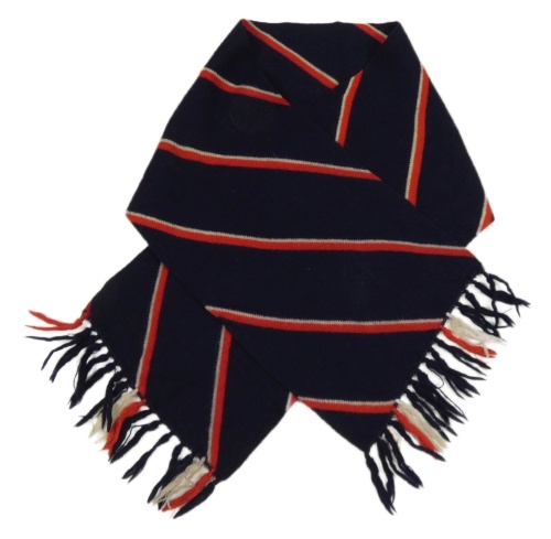 Tmavomodro-červená šál s pruhmi a strapcemi