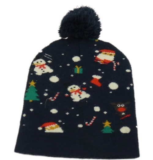Tmavomodrá čapica so sněhuláky a brmbolcom