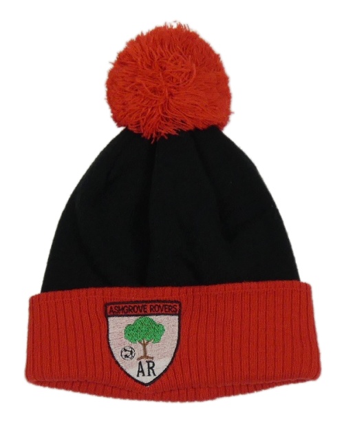 Čierno-červená pletená čapica s výšivkou a brmbolcom