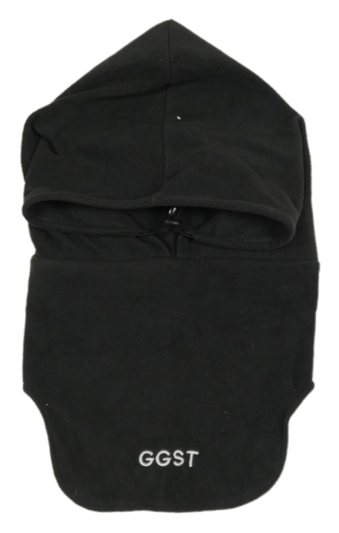 Černá flecová kukla s nápisom