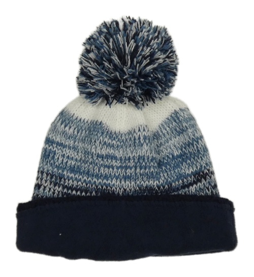 Petrolejovo-tmavomodro-biela pletená čapica s brmbolcom