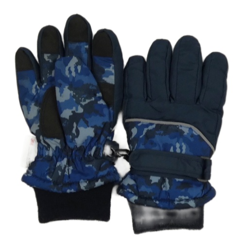 Tmavomodro-vzorované šusťákové zimní funkční prstové rukavice Tu