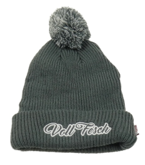 Tmavosivá rebrovaná pletená čapica s nápisom a brmbolcom
