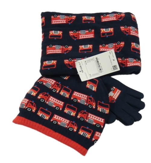 Nové - 3Set - Tmavomodro-červená čapica s hasiči + nákrčník + rukavice C&A