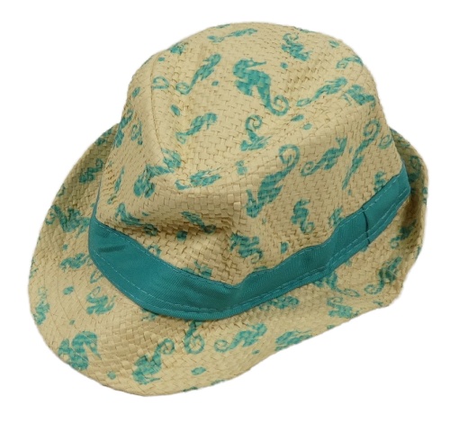 Béžový slaměný klobúk s mořskými koníky