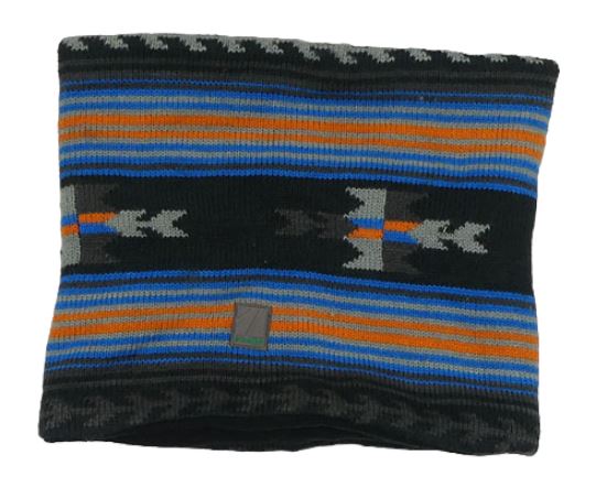 Černo-modro-oranžový pruhovaný nákrčník so vzorom